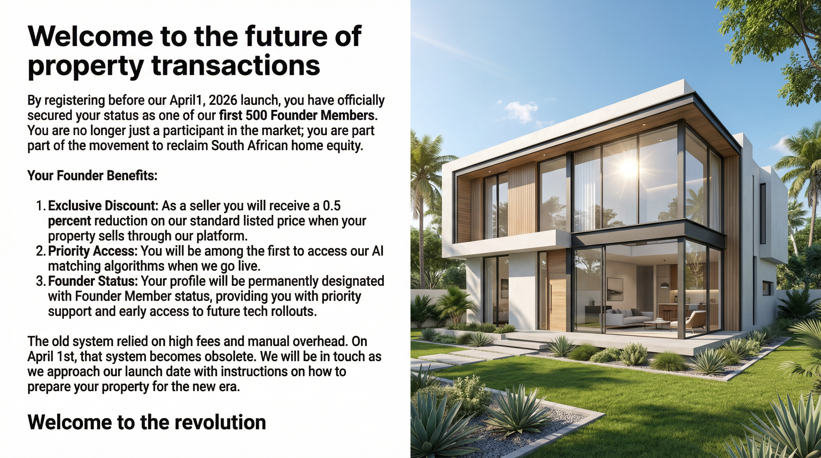 The subsidy is automatically applied when you choose to use our preferred, accredited conveyancing firms. These partners are integrated into our AI workflow to ensure a seamless and faster transfer process. All the benefits are transparent and detailed above.