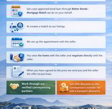 Yes. Every user on our platform undergoes a rigorous vetting process. Our AI agents verify multiple data points (such as ID documents, credit checks and matching criteria) before any appointment is confirmed with the Seller. For the Buyer, we confirm ownership through COJ documents and the Deeds office. Because you are dealing with the property owner directly, there is no "middleman" filter, leading to higher transparency and honest communication. Any negotiations that take place form a relationship deal between the two parties, which makes the process a lot quicker.