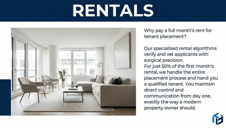 Our rental division is designed specifically for property owners who want high-quality tenants without the high overhead of a traditional rental agent.